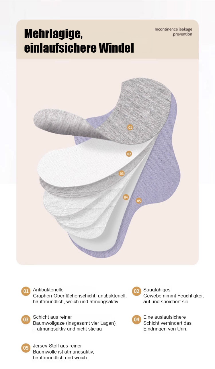 【Den ganzen Tag trocken und komfortabel】Waschbare Baumwoll-Hygieneeinlage-Schnell trocknend und atmungsaktiv